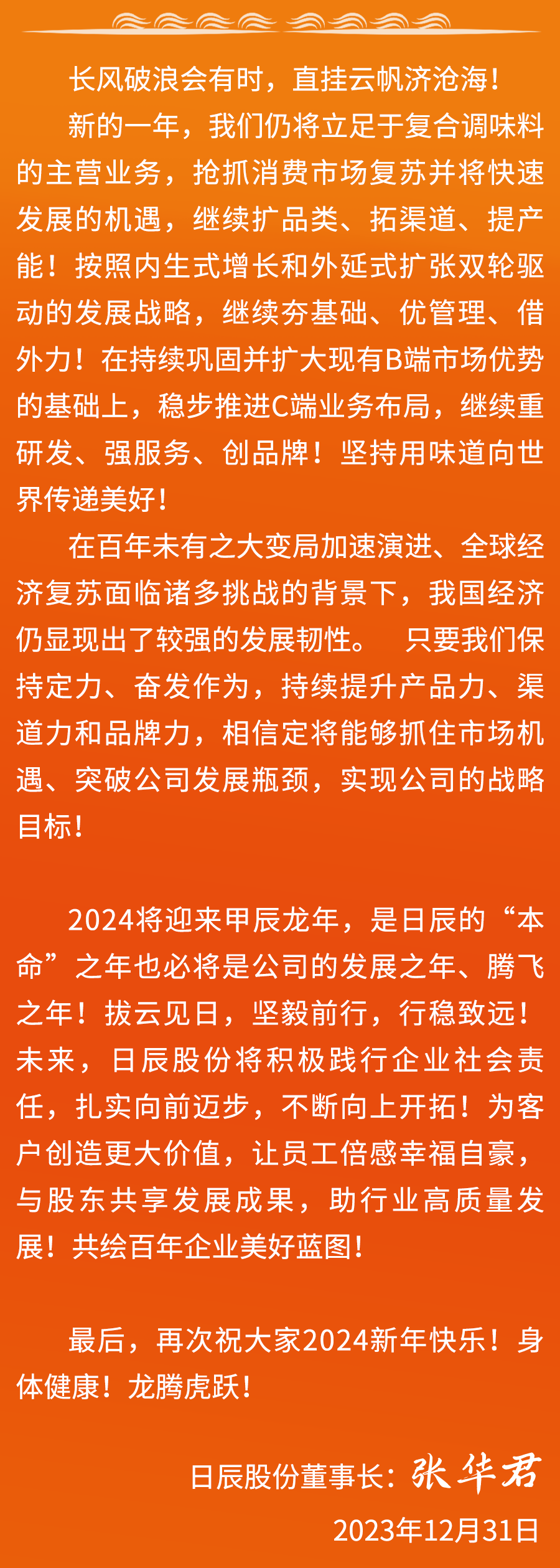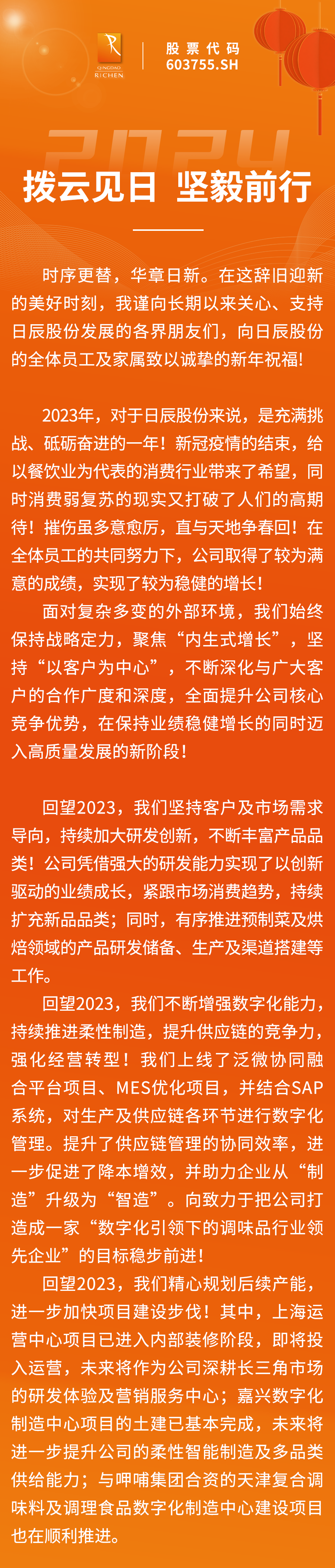 日辰股份董事長(zhǎng)2024新年致辭: 撥云見(jiàn)日 ?堅(jiān)毅前行