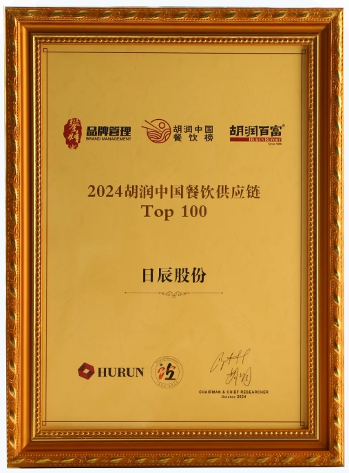 日辰股份登榜《2024胡潤中國餐飲供應鏈TOP100》